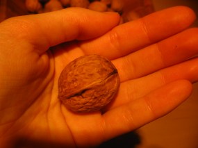 Wenn Du vorhast, mehrere Walnüsse auf einmal zu öffnen, solltest Du die getrennten Schalen mit einem Tesa-Streifen zusammenkleben! – Ansonsten weißt Du später nicht mehr, welche Schalen zusammen gehören.