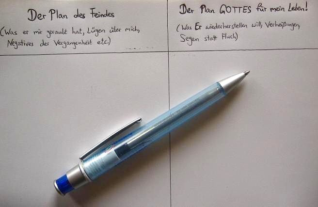 Schreibe auf der linken Seite des Blattes alles auf, was Dir in der Vergangenheit widerfahren ist. Dann bring es alles zu JESUS.