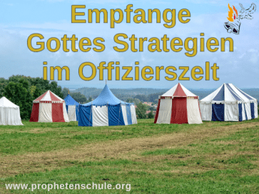 Diese Übung wurde aus dem Abschnitt „Besprechung mit dem General (Offizierszelt im Heerlager)“ unserer Prophetie für 2019: „Zeit im Zelt“ entwickelt, die Übung ist so nicht in der Jahresprophetie enthalten.