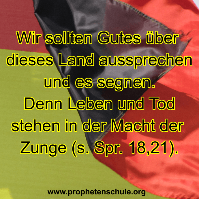 - Wir sollen segnen und nicht fluchen, auch wenn nicht alles, was die Regierung tut, unserer Meinung entspricht (siehe dazu Römer 12,14). Wir sollen Gottes Willen (prophetisch) hervorsprechen und nicht den Plan Satans.